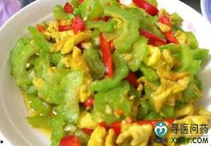 2. 苦瓜炒蛋:将苦瓜切片,与鸡蛋一起炒熟,加入适量的盐、生抽、料酒等调味料,即可食用。